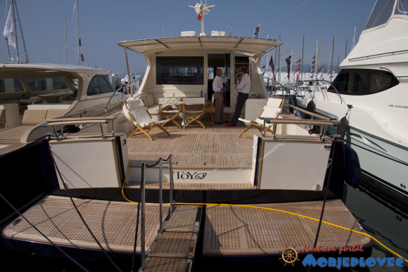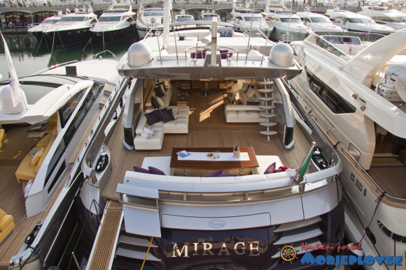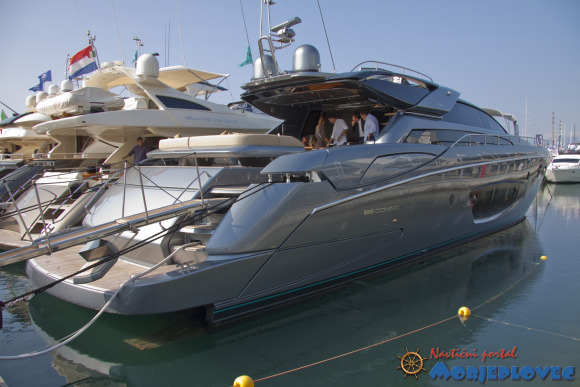 Mangusta 130 je ena od največjih razstavljenih jaht na sejmu. Privlači z izjemno dolžino in nizkim bočnim profilom, ki daje vedeti, da je to hitra barka. Za pravo zabavo skrbita 2 motorja MTU 16V4000 z močjo 2720 kW oziroma 3700 KM.