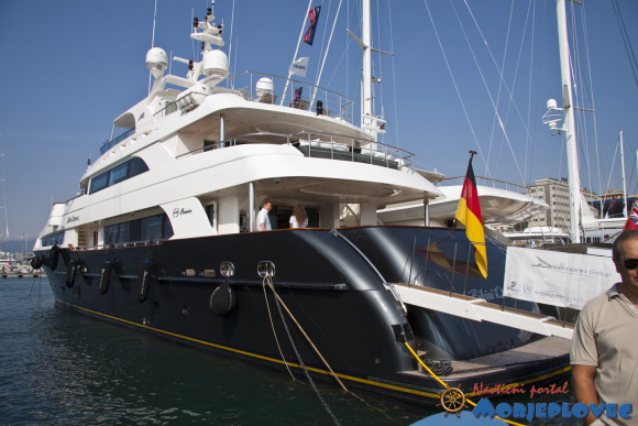 In še največja jahta na sejmu, spet iz nemških logov, tokrat priznanega proizvajalca Drettman z enako dolžino 41 metrov in ceno 15 milijonov EUR.