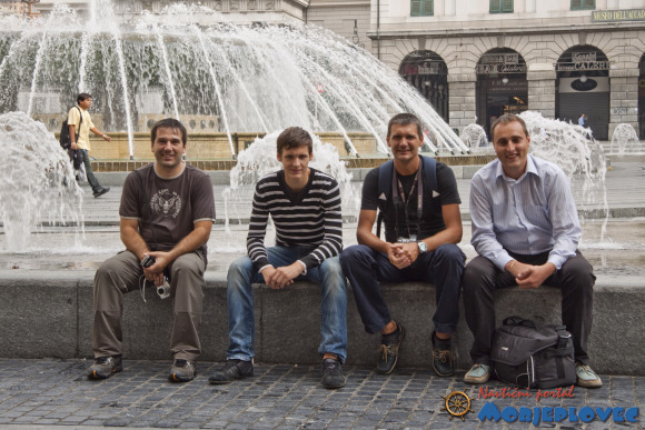 Del ekipe članov Morjeplovca se je srečal tudi v Genovi. Ko smo v nedeljo pohajkovali po mestu, je v samem centru pri fontani nastale tale fotografija.