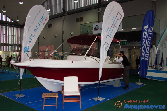 Predstavitev dogajanja bom tokrat opisal po vrsti, kot smo lahko “potovali” med razstavnimi prostori. Že v osrednji dvorani po imenu Kupola, ki sicer ni namenjena navtiki, je poglede vabil madžarski čoln Atlantic, ki ga pri nas zastopa podjetje Defens d.o.o. Na sosednjem razstavnem prostoru smo lahko videli še nekaj opreme za surfanje, od tam pa preko prehoda “odpluli” v dvorano Kocka, ki je bila kot vedno v celoti posvečena navtiki.