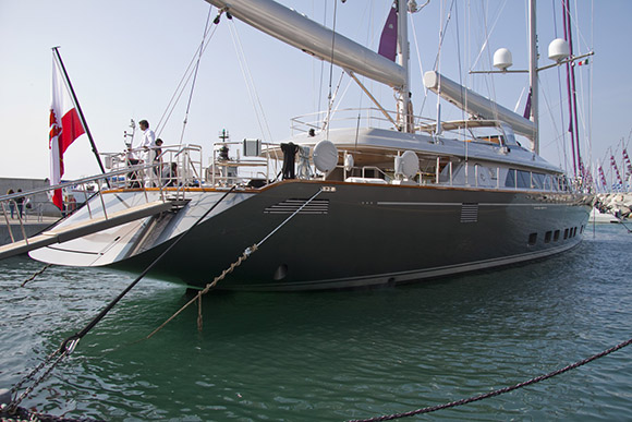 Okrog 25 m krajša pa je bila največja rastavljena jadrnica na sejmu, Perini Navi z imenom Baracuda, ki v dolžino meri “samo” 50 metrov, njen izpodriv pa znaša 422 ton.