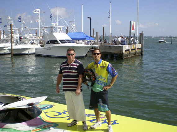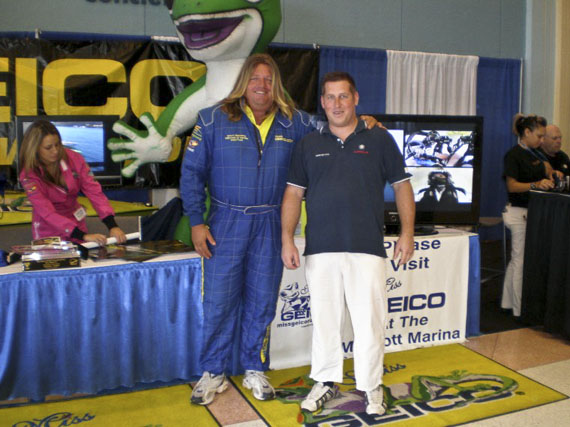 Na samem sejmu so me zelo presenetili z gostoljubnostjo, ki jo imajo prav vsi razstavljalci. Levo ob meni je Scott Begovich, »Throttle man«, na tekmovalnem plovilu tipa Turbine Extreme Class. Rekel mi je, da se življenje začne pri 210 mph…